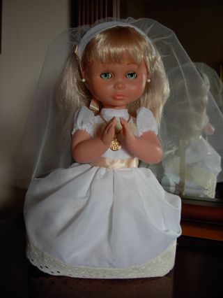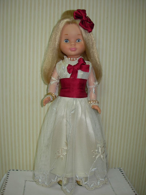 Recuerdo a mi preciosa madre, haciendo un vestido para una de mis muñecas,para ello cortó mi vestido de comunión y vistió a la muñeca tan impecable y deslumbrante que siempre he tenido esa muñeca vestida por mi madre como mi modelo para todas las que vinieron después.